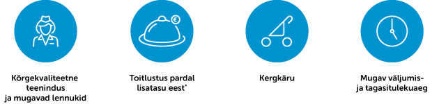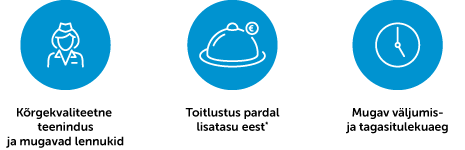 Lendudel on võimalik lisatasu eest tellida pardatoitlustust. Maksmine kaardiga ja sularahas. Menüüga saab tutvuda SIIN