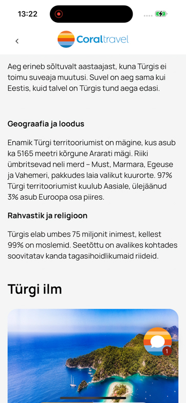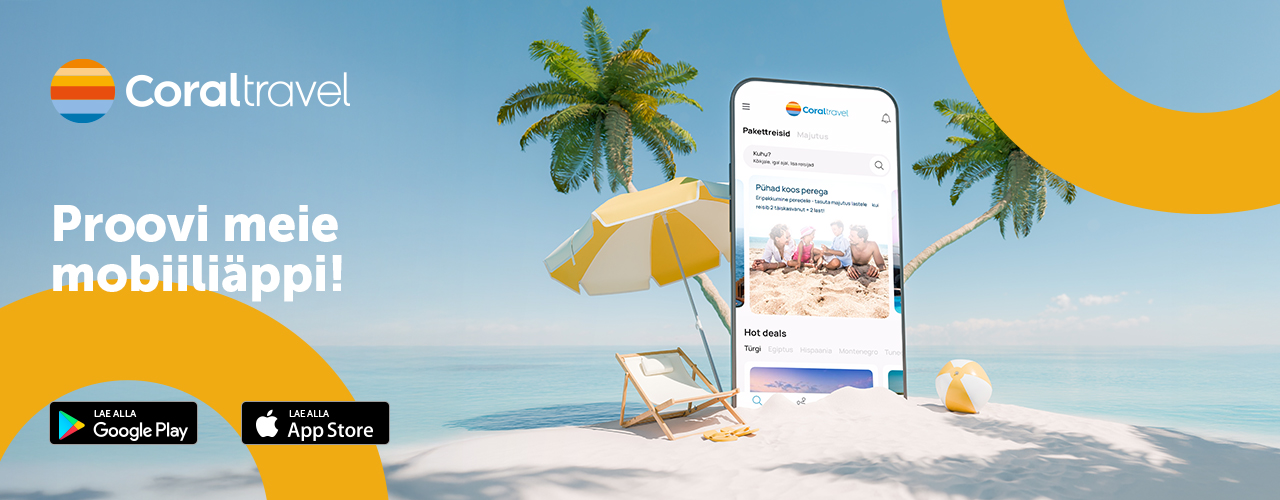 Planeeri oma reisid Coral Traveli rakendusega, broneeri ja maksa vaid paari klikiga ning jälgi oma broneeringu staatust ja teavet reaalajas.
